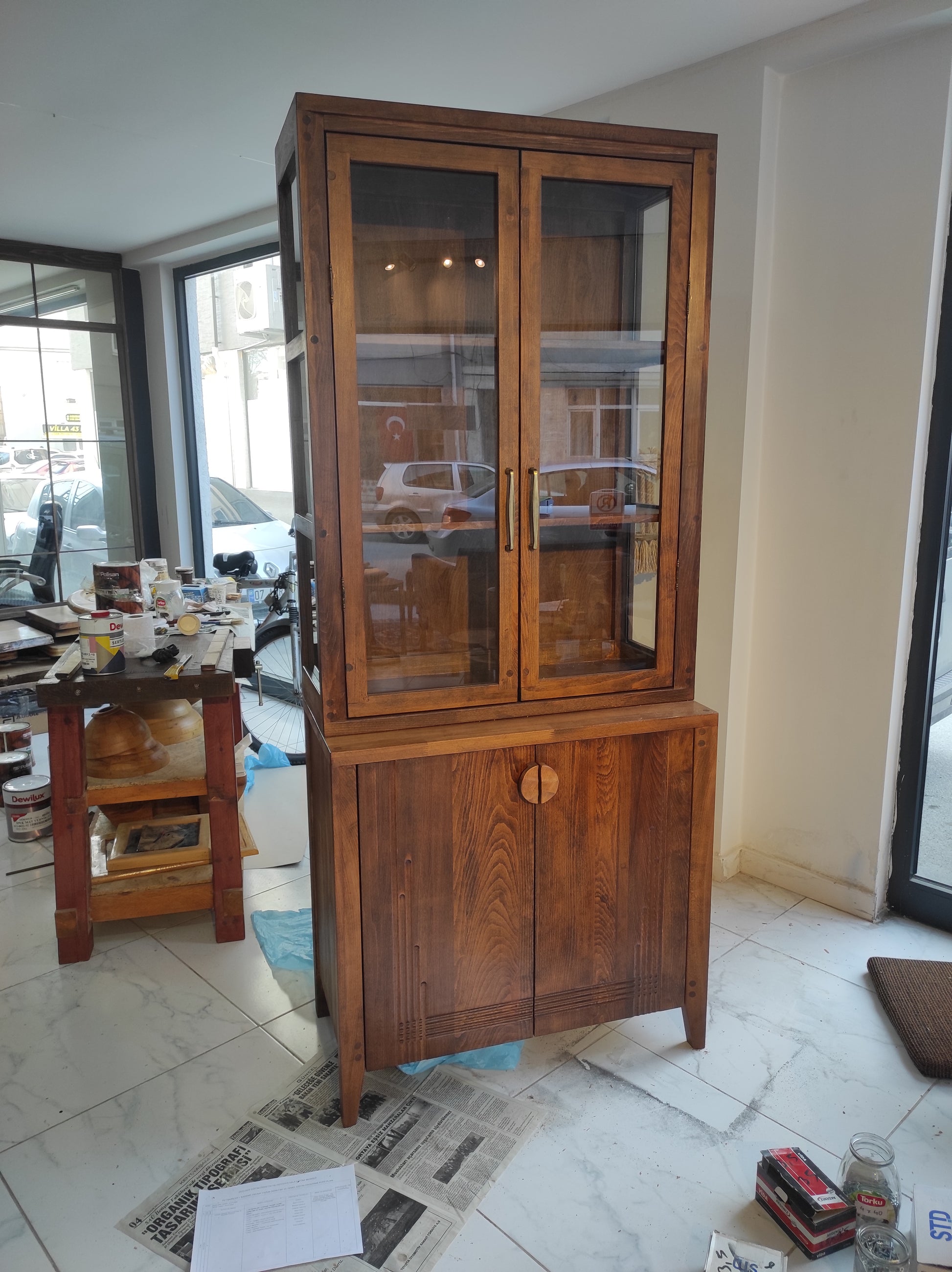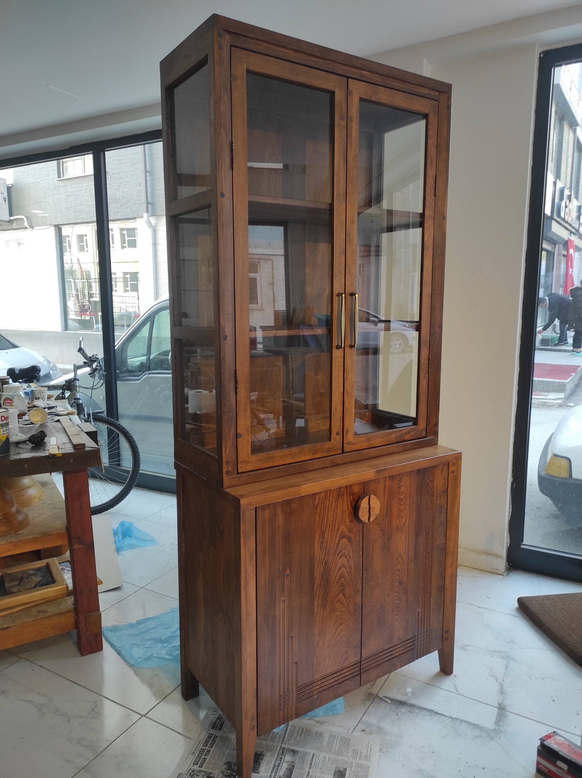 Modern ve klasik çizgilerin mükemmel uyumuyla tasarlanan bu gümüşlük, zarif açıları ve etkileyici ahşap işçiliği ile her mekânda şıklık yaratır. Alt dolap ve üst gümüşlük kısmı bir arada kullanılarak, estetik ve fonksiyonellik bir arada sunulur.