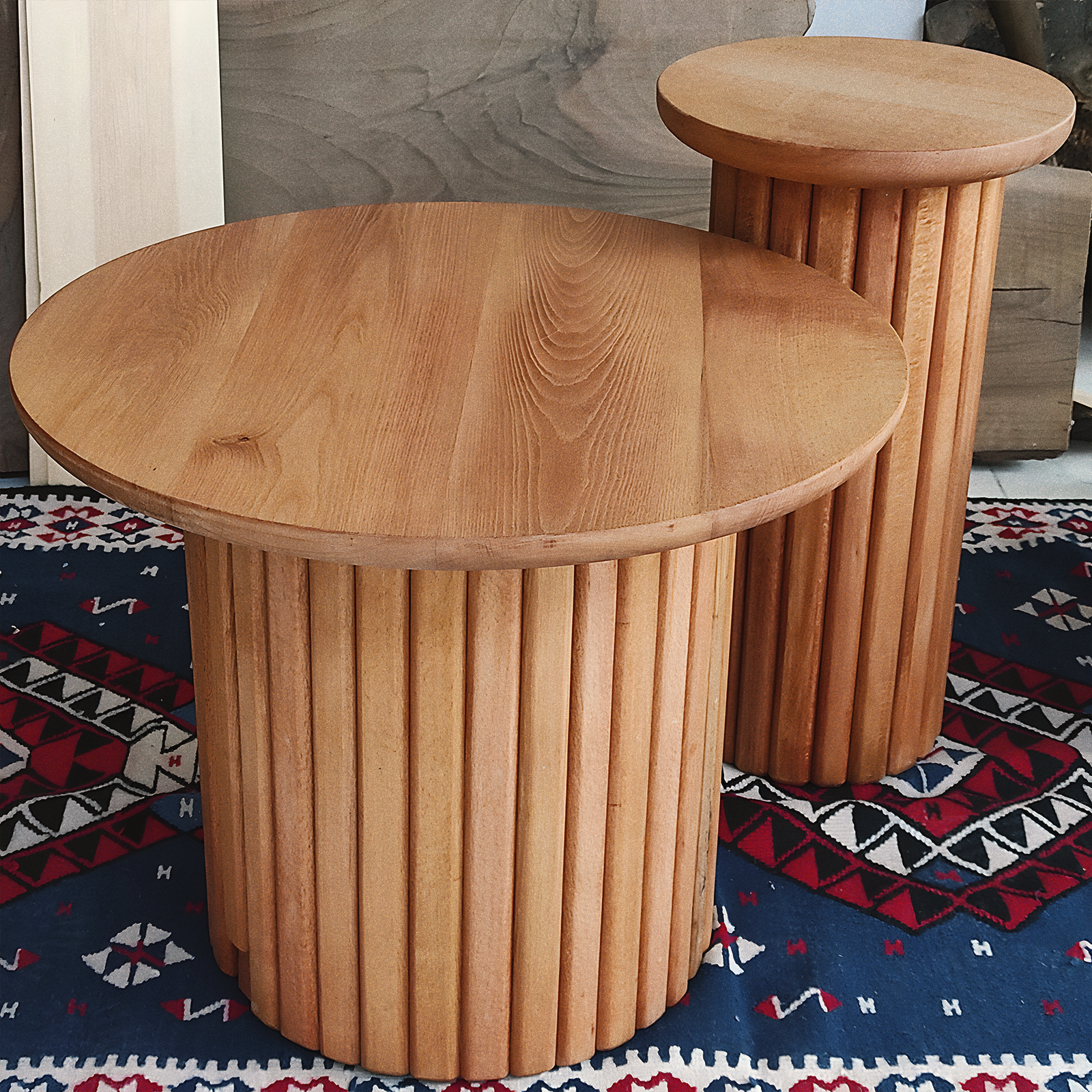 Yaşam alanlarınız için tasarlanmış bu şık sehpa seti, 1. sınıf fırınlanmış masif kayın ağacından üretilmiştir. Doğal malzeme ve ince işçilik ile hazırlanan bu sehpalar, oturma odalarınıza ya da bekleme salonlarınıza modern ve sade bir tasarım sunar.