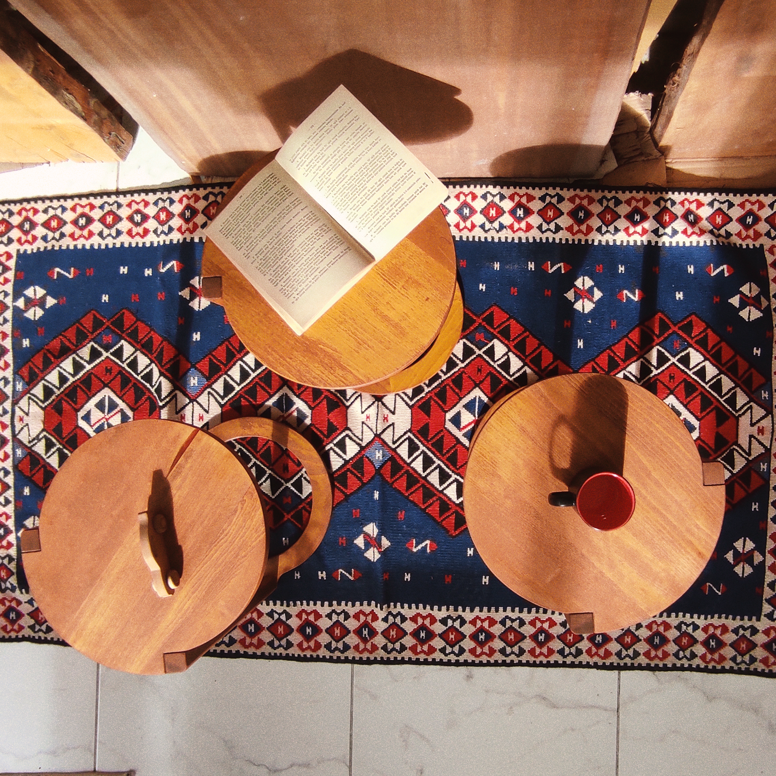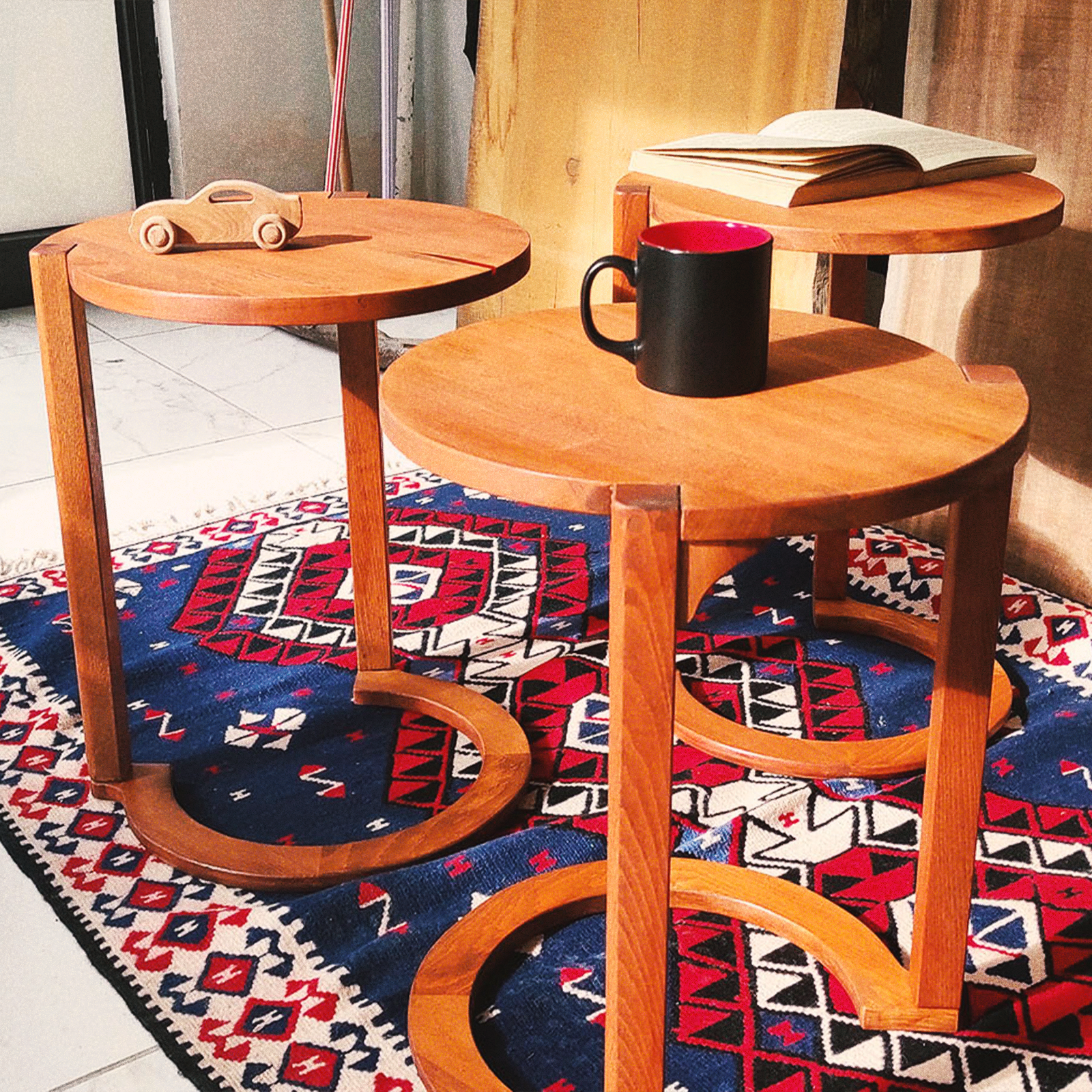 Bu fonksiyonel sehpa seti, oturma odasında, salonunuzda veya ofisinizde kullanılabilir. İç içe geçme özelliği ile küçük alanlarda bile yerden tasarruf sağlar.